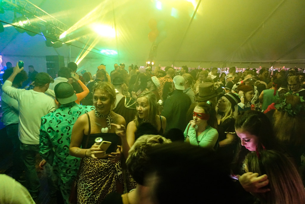 8. Внутри музыка, танцы, свет... Примерно 80% народу в костюмах, некоторые очень крутые, другие - попроще.