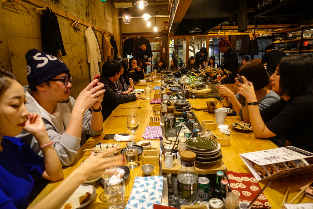 5. Внутри все посетители сидят за длинными столами, группы сажают бок о бок, это никого тут не смущает.