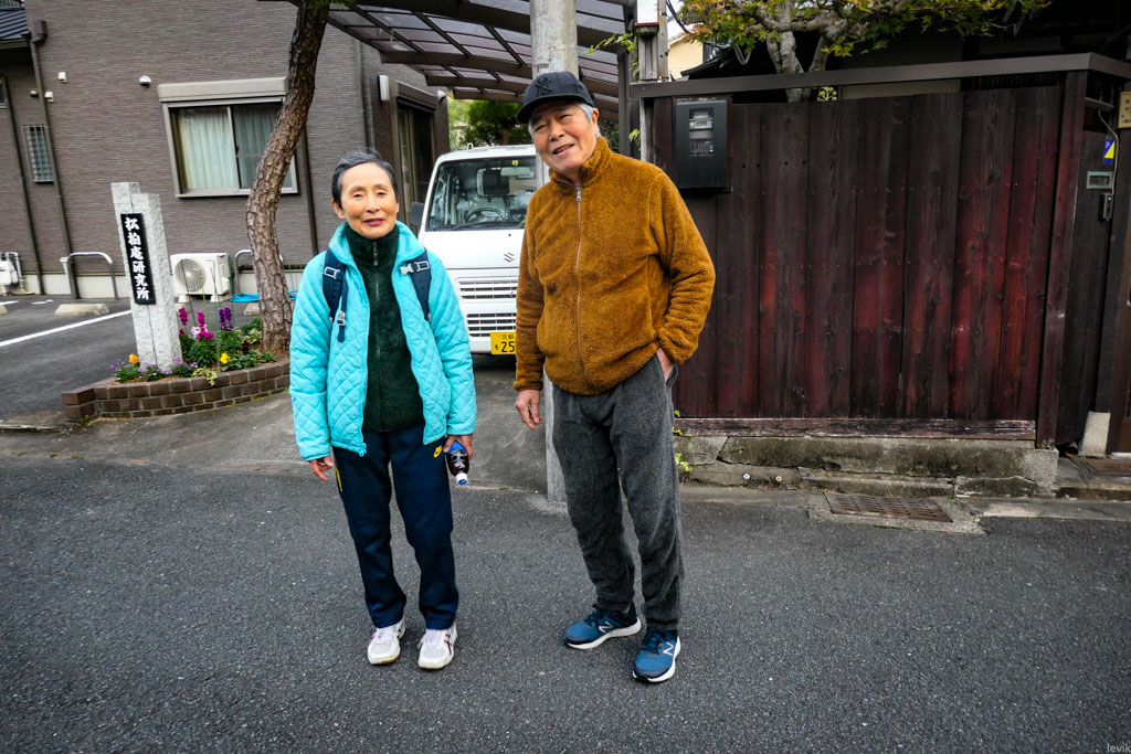 Я только что провёл несколько часов, прогуливаясь по Тропе Философа в Киото, заходил по очереди то в кафешки, то в храмы, где сейчас очень яркая осенняя листва. Теперь я действительно направлялся в сторону реки, где была назначена встреча. В тот конкретный момент я шагал по одному из спальных кварталов Хигасиямы, немного вдали от основных туристических достопримечательностей - и тут этот дедушка просто подошёл ко мне, и начал общаться. Причём он говорил на великолепным (пусть и с акцентом) английском языке.