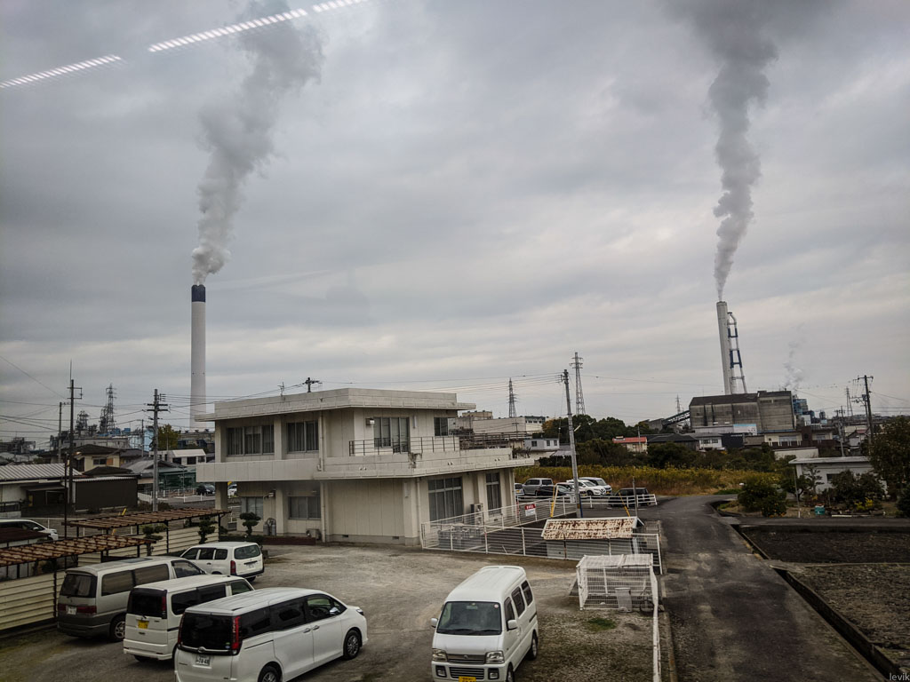 Одна из вещей, которые мне как туристу очень нравится в Японии - это свобода пользования огромной железнодорожной сетью. Купил себе JR-Pass на одну, две, три недели - и гоняешь себе по всей стране сколько влезет. А за окном почти всегда красиво. Но периодически идиллию зелёных или горных японских пейзажей разрушает торчащая, дымящая труба.