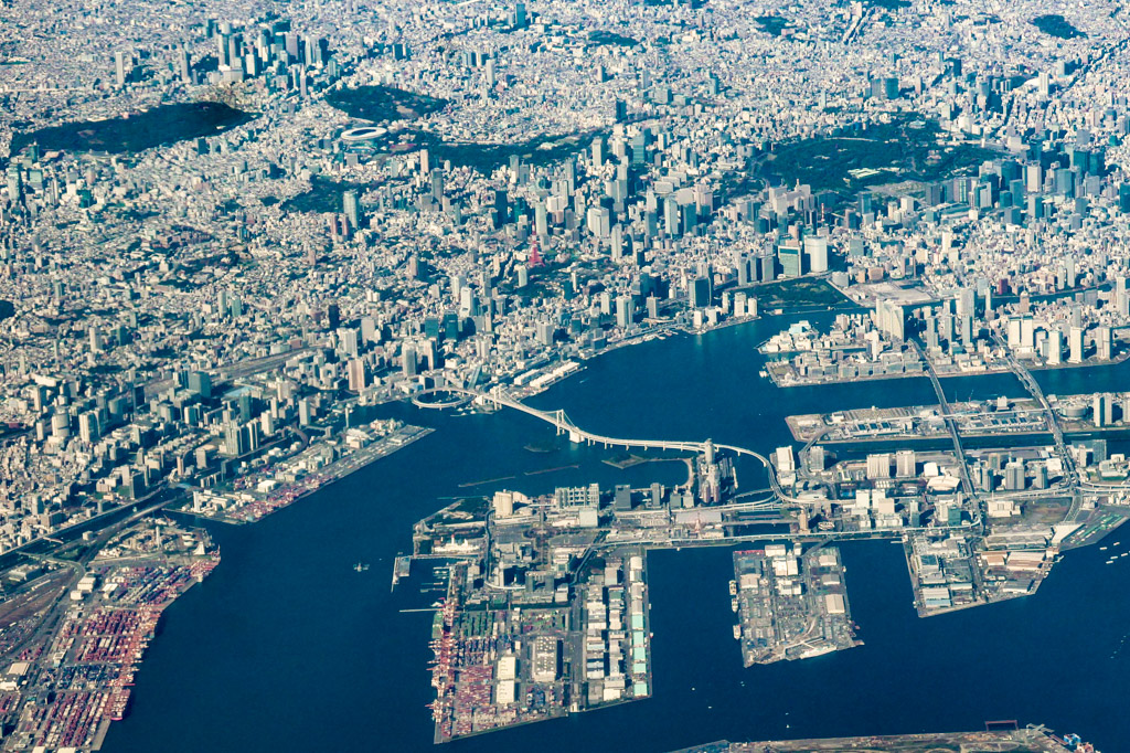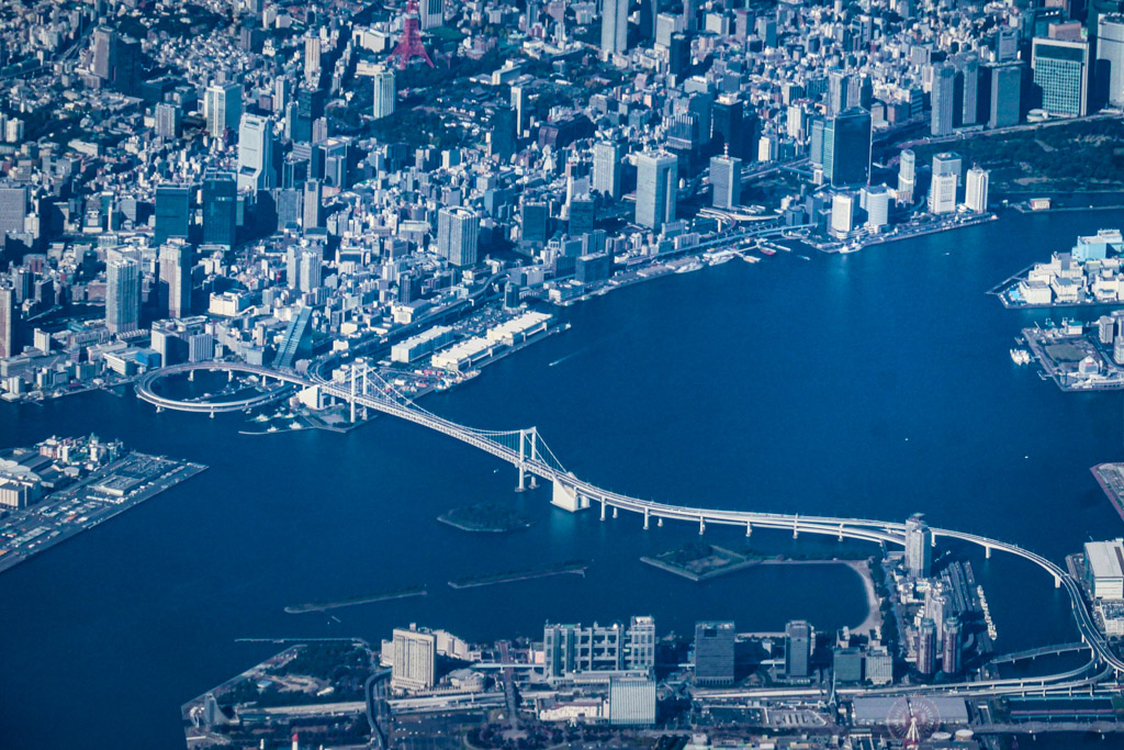 Так вот, вчера утром, вылетая из аэропорта Нарита, я заметил, что выдался на удивление ясный день. У меня было место у окна справа, и выглядывая на улицу после взлёта, я заметил, что мы пролетаем прямо над центром Токио - обычно такие виды открываются только при вылете из Ханеды, которая находится гораздо ближе к центру столицы.