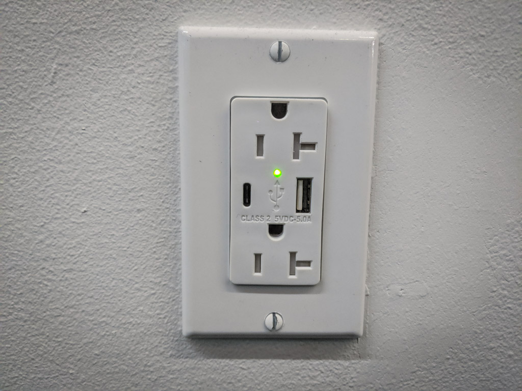 Однако, наука не стоит на месте. Люди начали соображать, что новый формат с нами надолго, а значит пора его начинать внедрять в повседневную жизнь везде, где сегодня мы видим классический USB. Например, пару месяцев назад, я впервые увидел розетки, со встроенным разъёмом USB Type-C (это у нас на работе, если что):