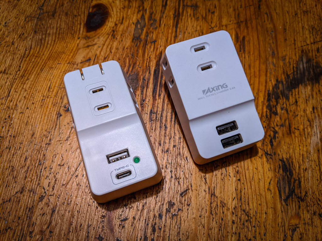 А ещё, я обновил мини-зарядку - которую таскаю "на всякий случай" в каждодневной сумке, или беру в короткие поездки. Был небольшой кубик на два классических USB, стал квадратик, в котором тоже один Type-A, и один Type-C.