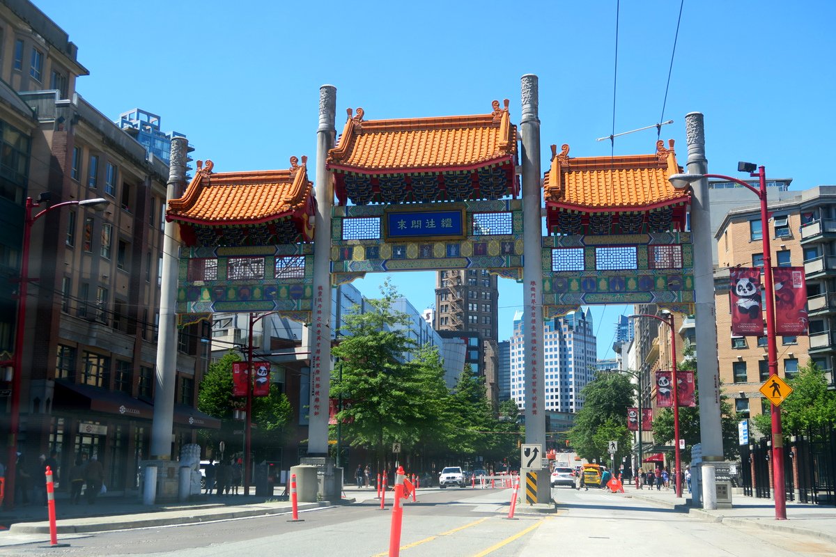 Вскоре вслед за Сан-Франциско, чайнатауны других городов стали повторять этот фокус с традиционной архитектурой. Вот, например, традиционные ворота пайфан на въезде в чайнатаун Ванкувера: