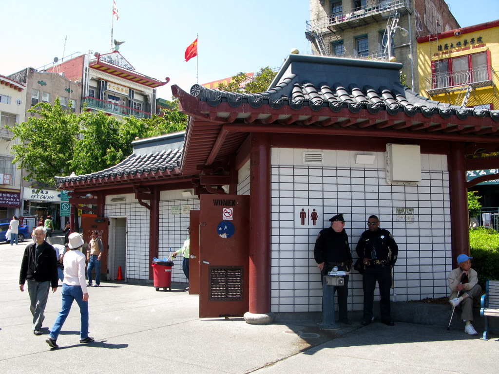 Как видите, оно стилизовано под пагоду, несмотря на то, что традиционно пагоды были религиозными зданиями - нечто вроде храма. Да что там торговый центр! Даже общественный туалет в чайнатауне Сан-Франциско косит под небольшой китайский храм!