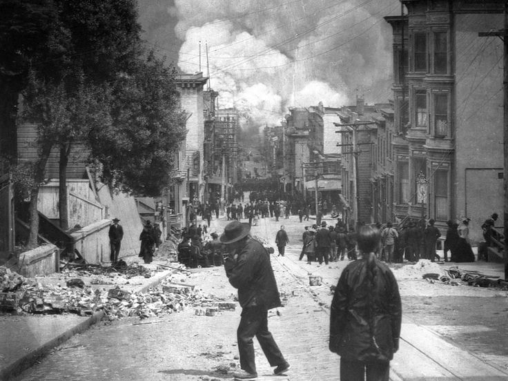 И тут, в 1906 году в городе случилось сильное землетрясение, из-за которого по Сан-Франциско прокатилась череда пожаров. А, надо сказать, что в те времена пожарные бригады имели обычай взрывать дома, чтобы предотвратить распространение огня.