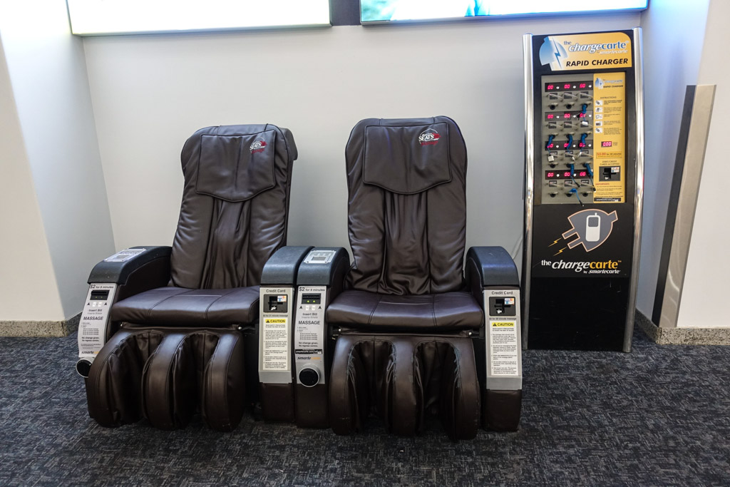 5. Туалетов в этой части терминала нет. Ресторанов/кафе/бар всего один, и не очень аппетитный. А вот различные ухищрения, чтоб заставить туриста потратить как можно больше денег - это пожалуйста. Давайте посмотрим, что нам предлагают. Начнём с массажных кресел и заряжалки для телефонов.