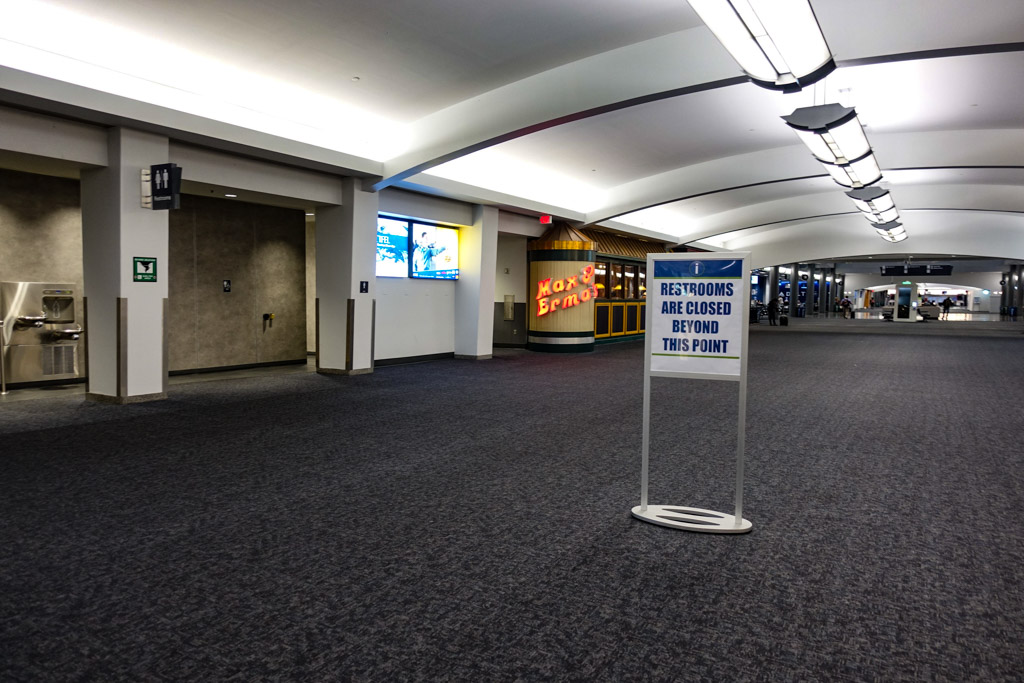4. Дальше терминал настолько безлюден, что администрация решила закрыть в той части все туалеты. О чём предупреждает эта табличка. То есть, закрытие половины туалетов тут достаточно обычное явление, что для этой цели напечатали красивую доску. Молодцы!