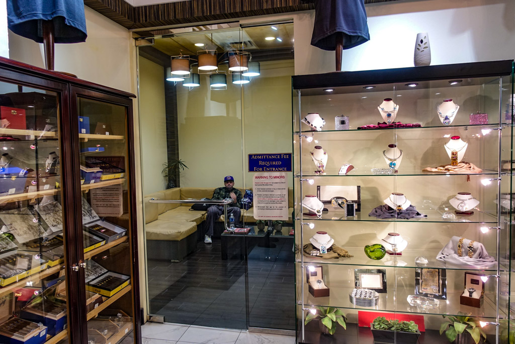 Вход сюда открыт только лицам старше 21 года. Разумеется, это не бесплатно (это же не Япония, где такие места спонсируют производители сигарет!) Для того, чтобы покурить в крохотной комнатушке, сидя на потёртом диванчике из псевдо-кожи, надо заплатить "членский взнос" - $6.00. Зато это покупает тебе право курить тут хоть весь день. Конечно, весь день мало кто использует, потому что надо улетать.