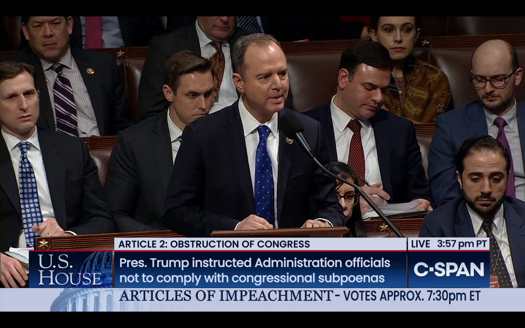 Сегодня в Палате Представителей прошли дебаты по импичменту. Обе партии получили по три часа времени, и формат был похож на шахматную партию: каждая сторона по очереди предоставляла слово тому или иному спикеру на короткие высказывания от 30 секунд до трёх минут.