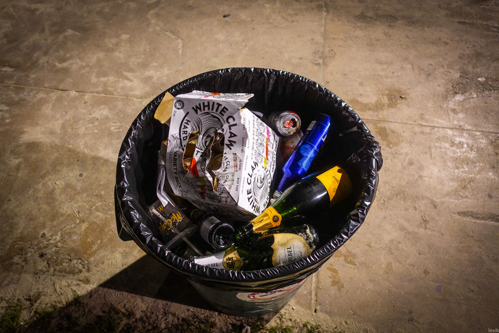 13. В пляжной мусорке собрались следы "безалкогольного" вечера.