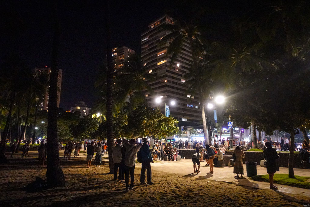 Вчера мы отпраздновали наступление 2020 года на Гавайском острове Оаху, на пляже Вайкики. Когда планировалась эта поездка, я прикинул, какое место на Гавайях будет на Новый Год самым весёлым, шумным и людным - и решил, что наверное именно Гонолулу и Вайкики. Именно поэтому накануне мы прилетели сюда с Мауи.
