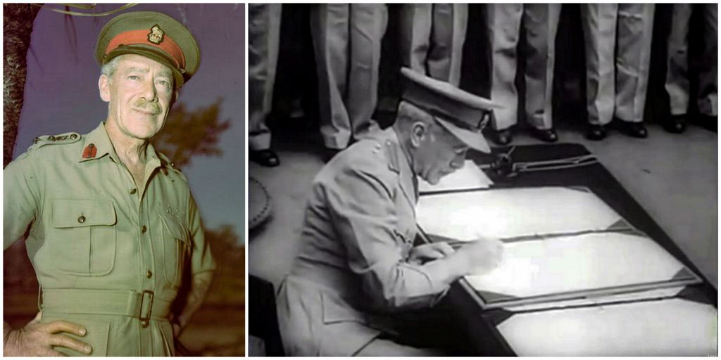 Но вернёмся к церемонии капитуляции. Вслед за Деревянко акт подписал представитель Австралии, а затем пришла очередь посланника Канады, полковника Лоренса Косгрэйва. Косгрэйв был ветераном Первой Мировой, в ходе которой ослеп на один глаз. Пишут, что его ошибка была вызвана именно этой слепотой, однако, признаюсь, я и сам, хоть неплохо вижу обоими глазами иногда допускаю похожие ляпы.
