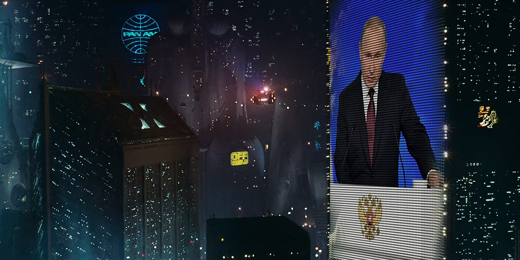 Во первых, я видел фотографии Путина, который выступает с огромного фасада здания. Как в "Бегущем по Лезвию". Практически уверен, что это фотошоп.