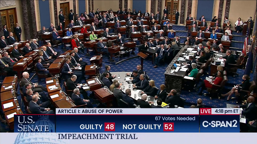 Вчера в Сенате завершился суд над Дональдом Трампом. Как вы помните, в декабре нижняя палата объявила ему импичмент, и последние несколько недель Сенат заседал в формате суда, который решает дальнейшую судьбу президента - будет ли он отстранён от власти, или сохранит свой пост.