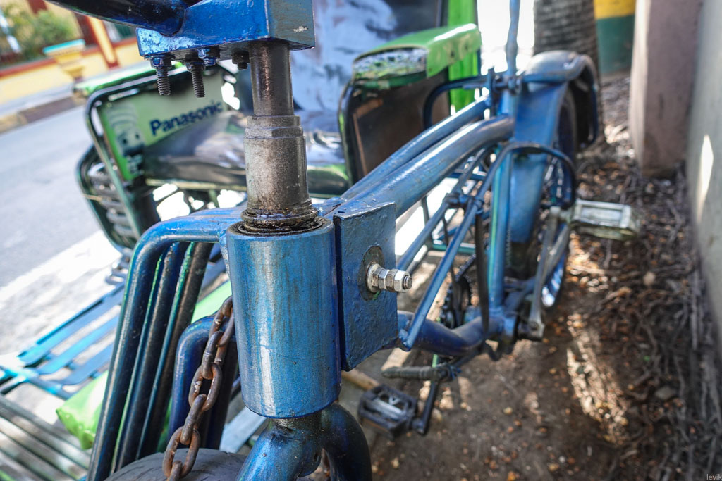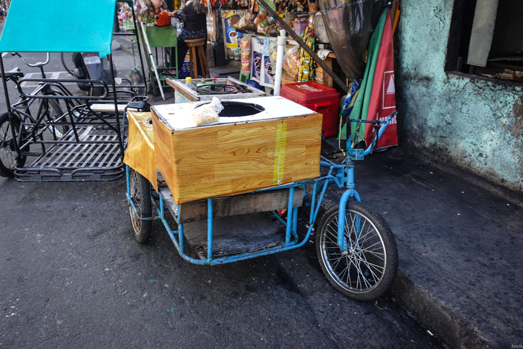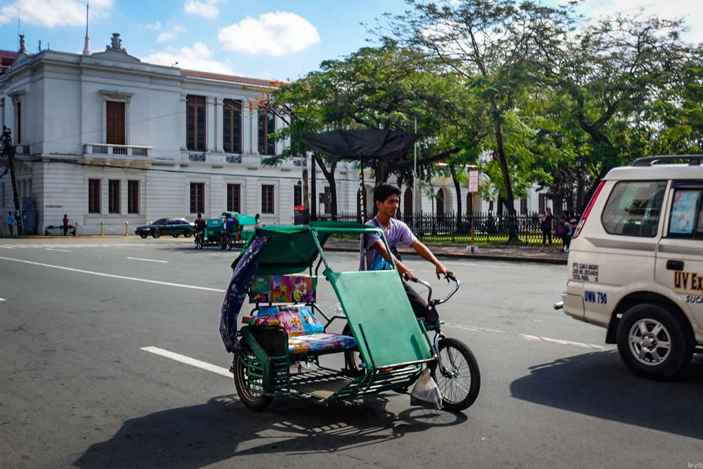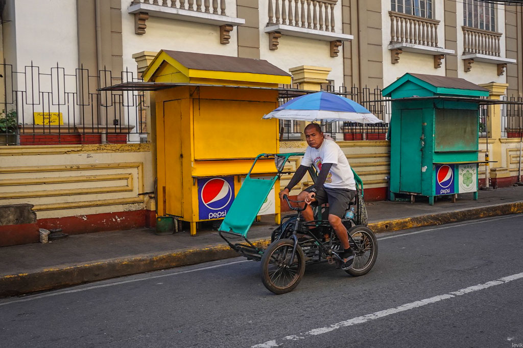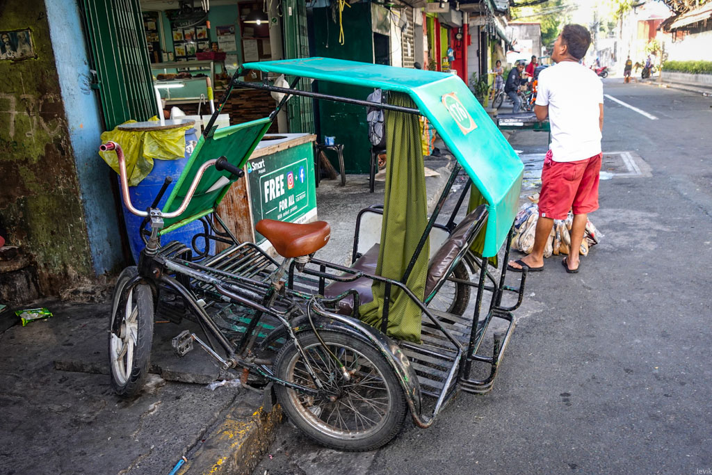 14. А ещё, оказывается есть велосипедная модель трёхколёсных драндулетов! Правда такие я встречал только в старом городе Манилы - возможно громко тарахтящие моторы обычных трайков тут запрещены властями. Водители таких вот рикш предлагают приезжим показать центр "недорого".