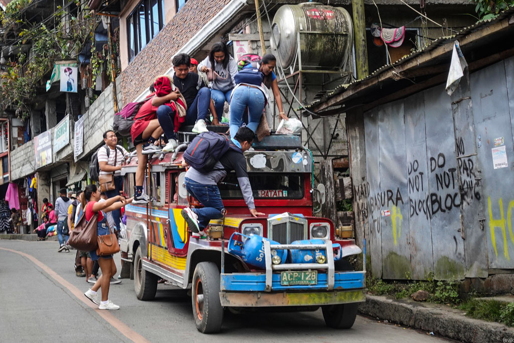 24. Кстати внутри довольно тесно. Люди сидят вдоль всего кузова на двух длинных скамьях, лицом друг к другу. Хорошо, что страшный уханьский коронавирус пока не сильно проник на Филиппины - а то думаю в таких маршрутках эпидемия очень быстро бы передавалась от больных пассажиров к здоровым!