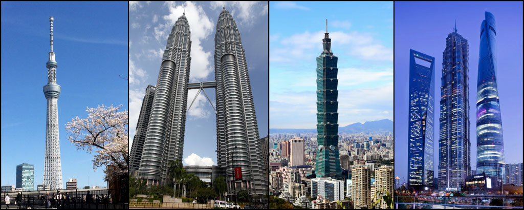 2. Во всех главных городах Азии есть высокие структуры, которые определяют характер города, так же как Эйфелева Башня определяет Париж. Вот, к примеру несколько из них (наверняка вам будет нетрудно назвать эти города):