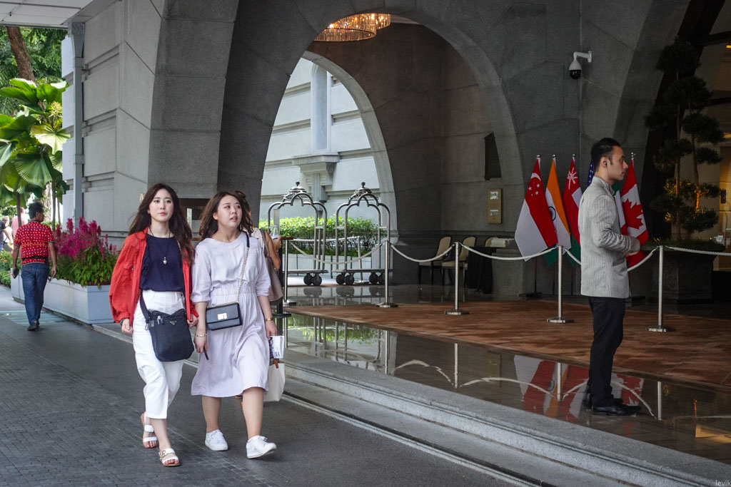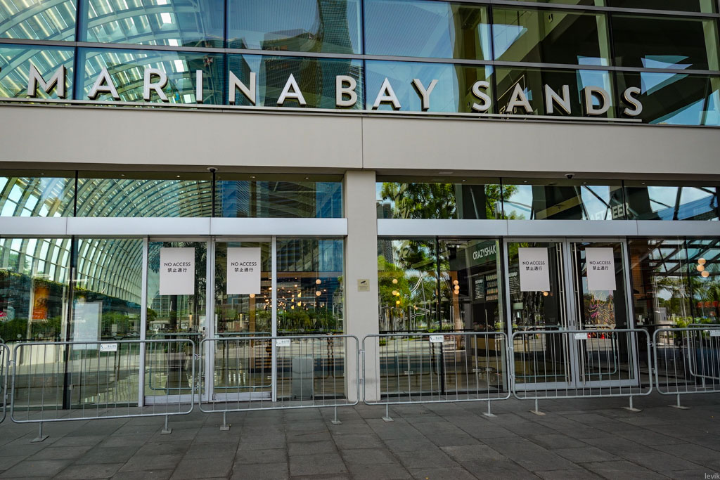 17. Эта история с "закроем большинство входов, а на оставшемся будем проверять" очень распространена. Например, вот один отель, на берегу Марины, где большой зал, через который всегда можно было ходить насквозь. Отсюда ещё отлично смотреть на ежедневное световое шоу Марины Бэй.