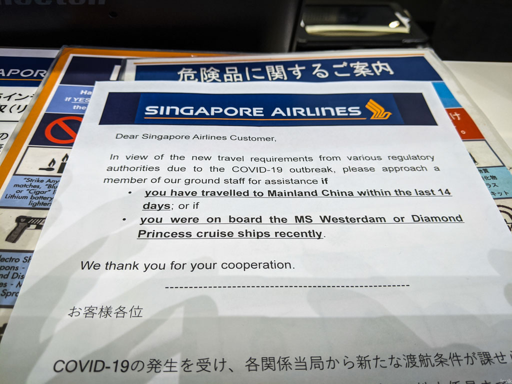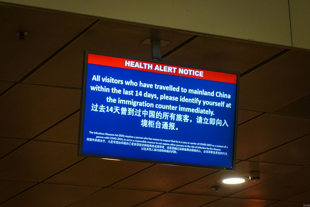 2. С начала февраля, Сингапур запретил въезд туристам, которые за последние 14 дней побывали в Китае. Когда я направлялся туда из Токио, на стойке регистрации была обновлённая надпись, упоминающая не только Китай, но и круизные корабли, где были случаи заболеваний. Дело как раз было утром того дня, когда закончился карантин на судне Diamond Princess. Быстро сработали!