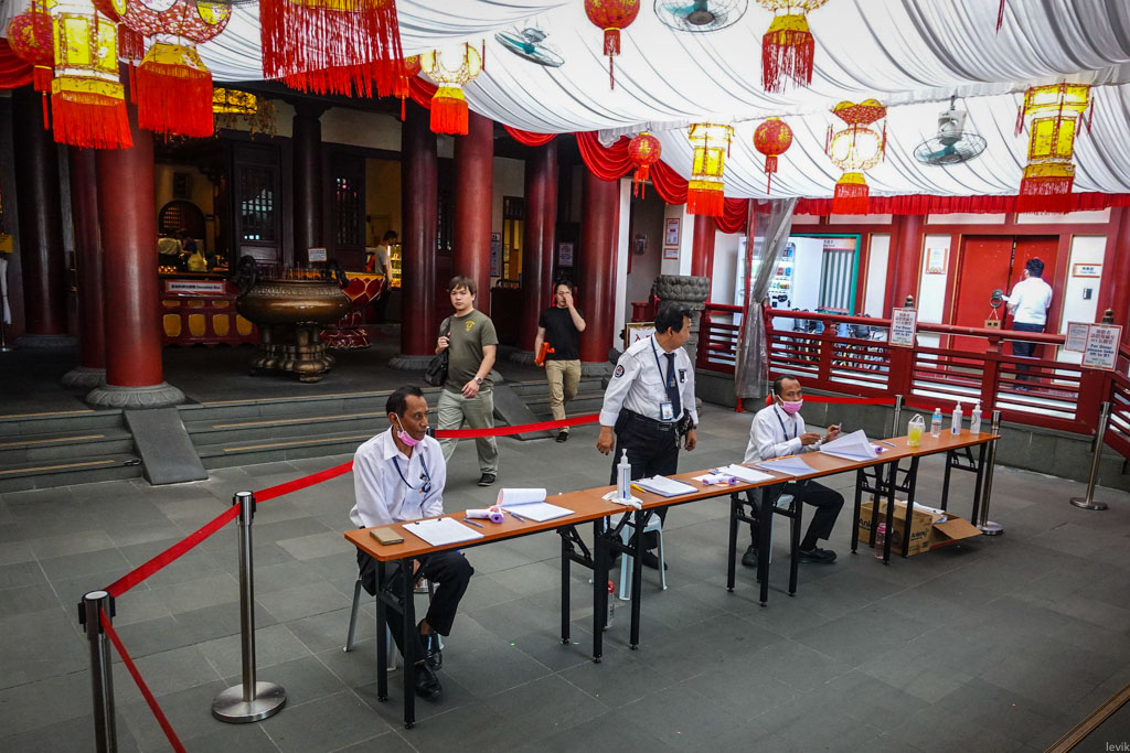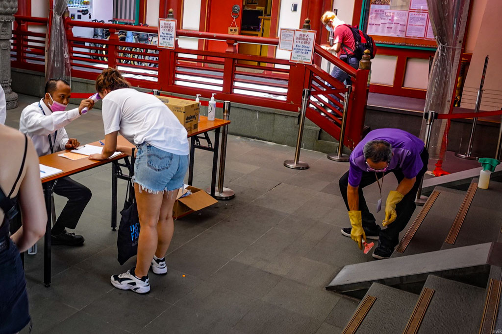 6. Но если в ваши туристические планы входит посещение людных мест, то тут вы скорее всего увидите некоторые меры борьбы с заразой нашего времени. Например я решил зайти в Храм зуба Будды (в мире есть несколько храмов, где считают, что подлинный зуб Будды именно у них)