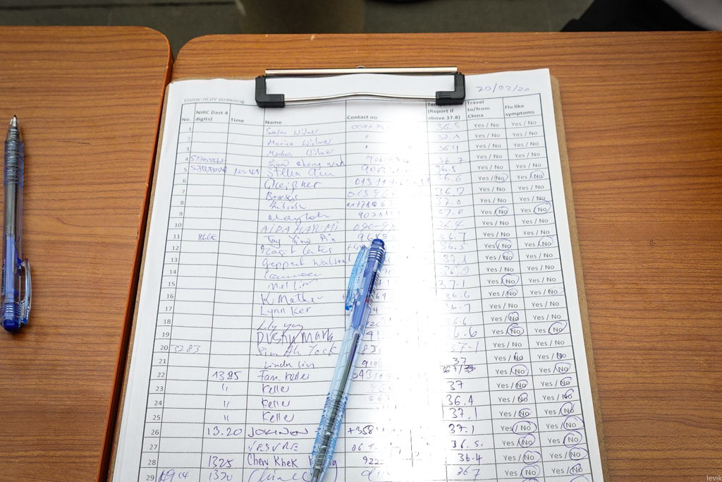 10. Потом заставляют записать свои данные, и какая температура была. Я заметил, что передо мной в списке уже было пару человек с 37 и выше, а ведь нас в детстве всегда учили, что это уже температура больного человека. Но, похоже, в Сингапуре так не считают.