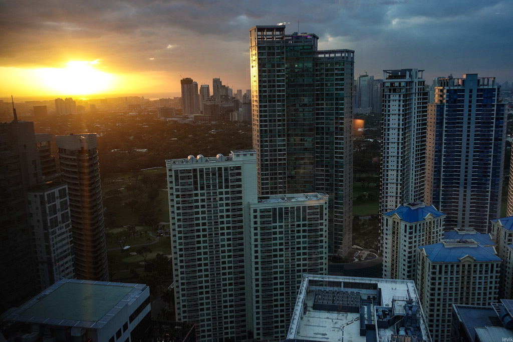 1. Пятница. Смотрю закат из окна нашего офиса в одном из богатых районов Манилы.
