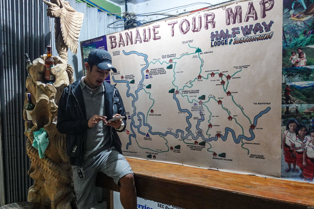 Автобус шёл в городок Банауэ, о котором писали, что он рядом с Батадом. По времени это получалось довольно жёстко: в пятницу я должен был работать из нашего Филиппинского офиса в Маниле, а раним утром в понедельник уже улетал в Осаку. Выходит, можно в пятницу вечером после работы сесть на автобус, приехать в Банауэ в субботу утром, погулять там весь день, а вечером выехать в обратном направлении, вернувшись в Манилу рано утром воскресенья. Две ночи подряд спать на автобусе мне не очень хотелось, но другого варианта я найти не мог.