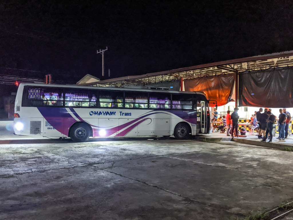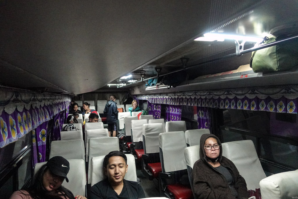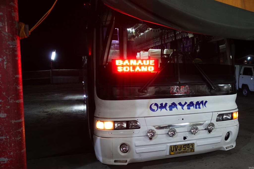 Но, вот незадача! Это довольно далеко от Манилы, и никаких дельных аэропортов рядом тоже нет. Зато, оказалось, можно доехать ночным автобусом. По деньгам - сущие копейки: около десяти долларов в один конец. Но переезд занимает всю ночь - девять часов по извилистым горным дорогам. И условия в этом автобусе оказались отнюдь не шикарными!