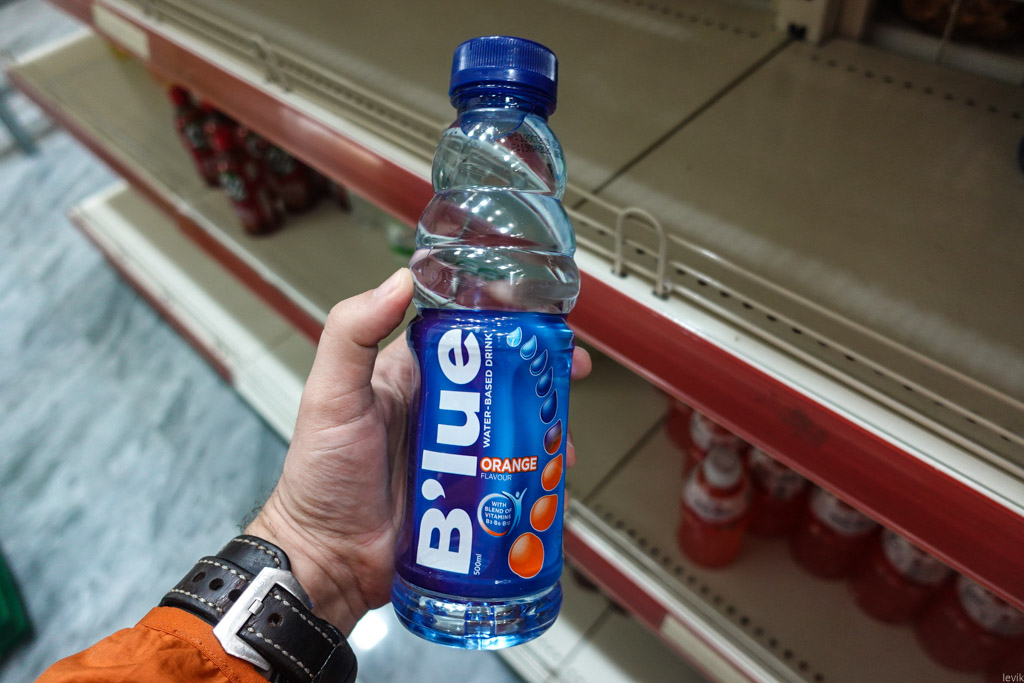 11. Хотел купить воды, но чуть не взял вот это по ошибке. "Сь'иний, апельсиновый напиток на основе воды" - по моему очень пугающая наклейка. Хорошо, что вовремя заметил подвох.