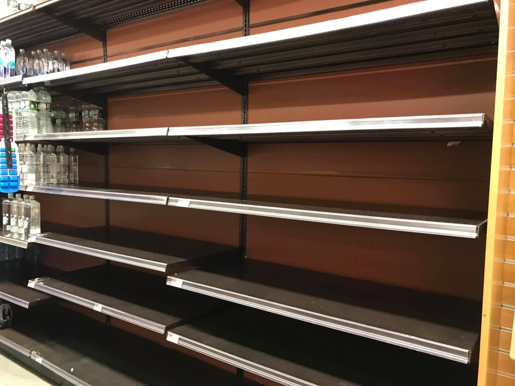 Тревожные перспективы заставляют людей скупать продукты в магазинах. Люди не знают, чего ожидать. Некоторые запасаются кто консервами, другие - туалетной бумагой, а в некоторых магазинах Нью-Джерси раскупили всю воду в крупных галлоновых жбанах: