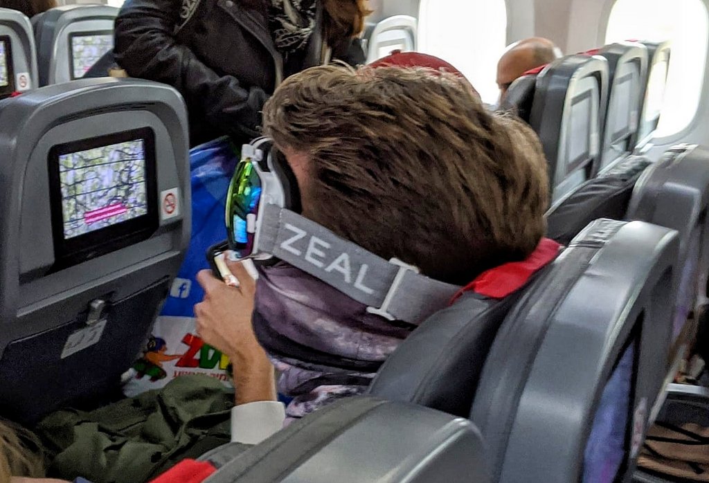 Полноценных скафандров пока не видно, но, возможно, это лишь дело времени. На рейсе из Франции в Америку мой друг сфотографировал вот такого пассажира - говорит он всю дорогу так и летел, в лыжной маске и с платком на лице.