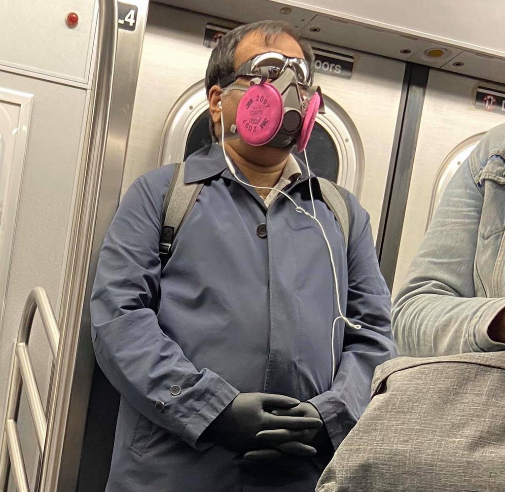 Где-то месяц назад в американских соцсетях периодически мелькали картинки того, как защищаются от вируса китайцы: кто бутылку от воды на голову наденет, кто в метро едет чуть ли не в собственном скафандре... Возможно вы и сами их видели. Посыл у таких постов был примерно следующий: "Посмотрите, как смешно люди в далёком Китае борются с заморской заразой." Сегодня ситуация изменилась, и в моей ленте Фейсбука мелькают фотографии персонажей в нью-йоркском метро. Кто-то ограничился дефицитными масками на лицо...