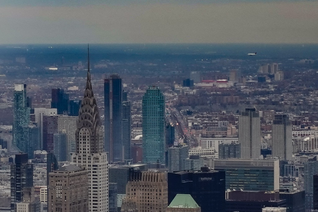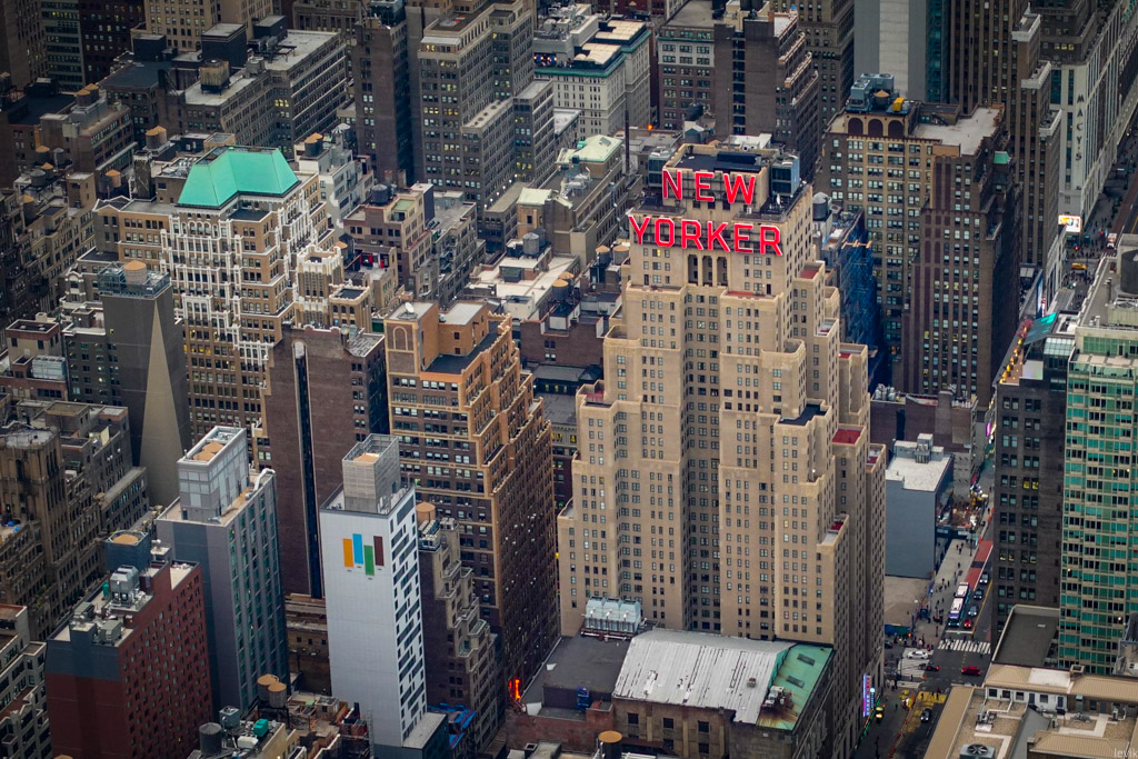 21. Если приглядеться, и напрячь теле-фото-способности фотоаппарата, то можно увидеть даже верхушку изящного Крайслер-Билдинга. Именно с этой башни - и небольшой хитрости - пошла мода на огромные шпили, которыми увенчаны высотки всего мира.