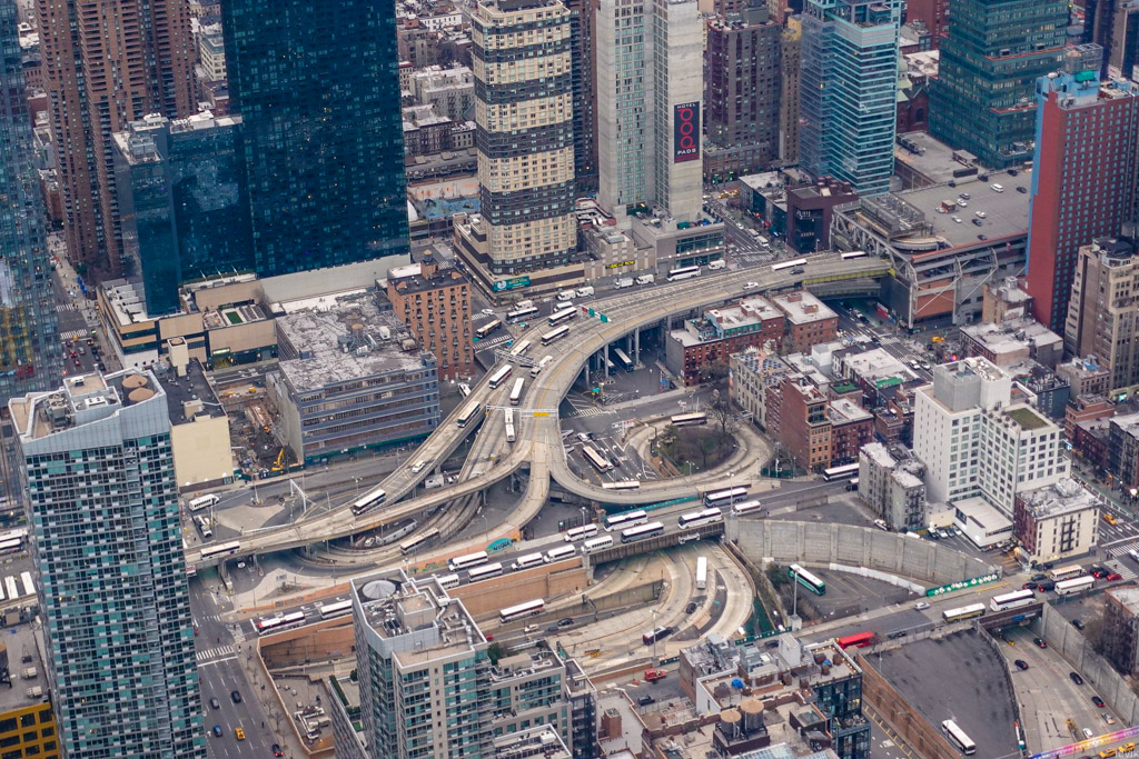 33. Замысловатые загогулины дорожных развязок, выходящих из автовокзала Port Authority.