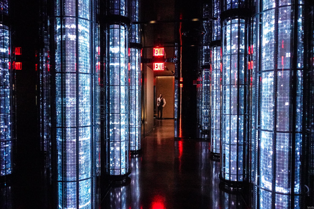 8. Много всяких лампочек, подсветок и дисплеев. Всё это должно подготовить человека к лифту.