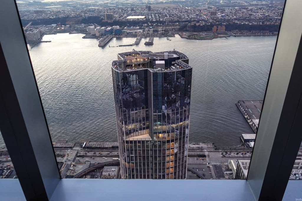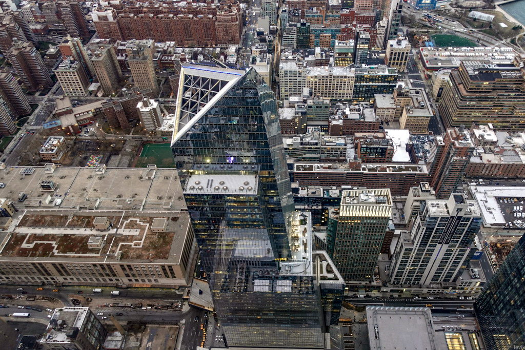 30. Что ещё мы можем отсюда увидеть? Вот треугольная крыша соседней, более низкой башни - это тоже в Хадсон Ярдс.