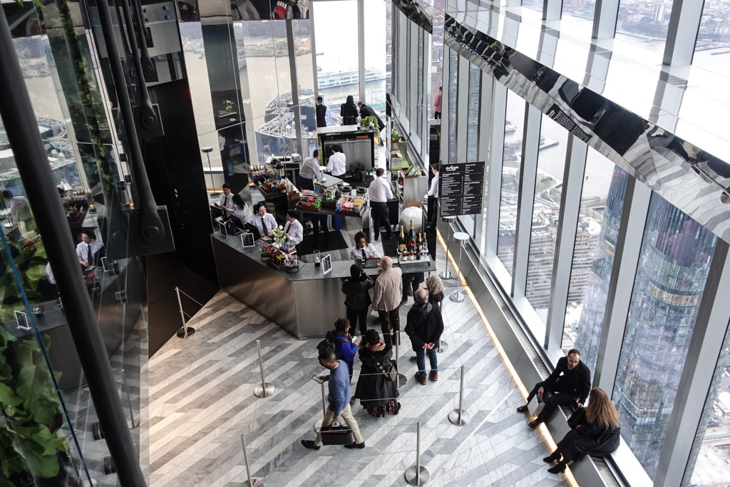 28. Создатели Edge воспользовались тем, что площадка выступает из корпуса башни, и создали возле её края самое настоящее окно вниз. Тут можно в прямом смысле посидеть над крышами зданий, глядя вниз. Если вам не страшно конечно.