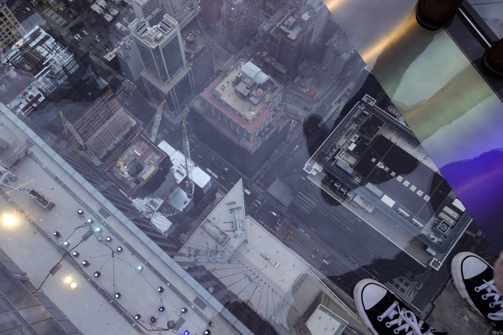 27. Посреди площадки находится обязательная фишка - "стеклянный пол". Такие есть везде, только в большинстве новейших небоскрёбов, форма здания не позволяет делать настоящее окно вниз, и из-за этого приходится имитировать пропасть с помощью электронных дисплеев. Разумеется, эффект от этого не такой.