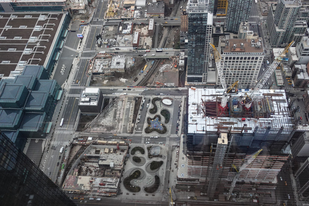 19. А если посмотреть прямо вниз, то видно, как работы по строительству Хадсон Ярдс ещё продолжаются. Здесь возводят какие-то новые объекты, выстраивают пешеходные зоны, облагораживают местность.