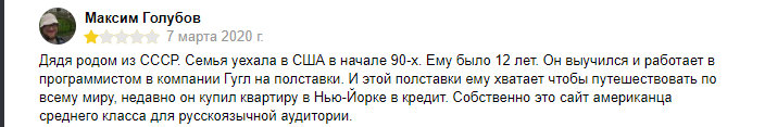 Оторвёмся от заметок о коронавирусе, чтоб обсудить что-то лёгкое и незначительное. А именно - этот блог и его автора. Недавно я с удивлением узнал, что в Яндексе можно оставлять отзывы на любой сайт, и что на мой скромный блог наоставляли уже несколько отличных перлов! Что может быть интересней, чем почитать, что о тебе думают не предвзятые незнакомцы?