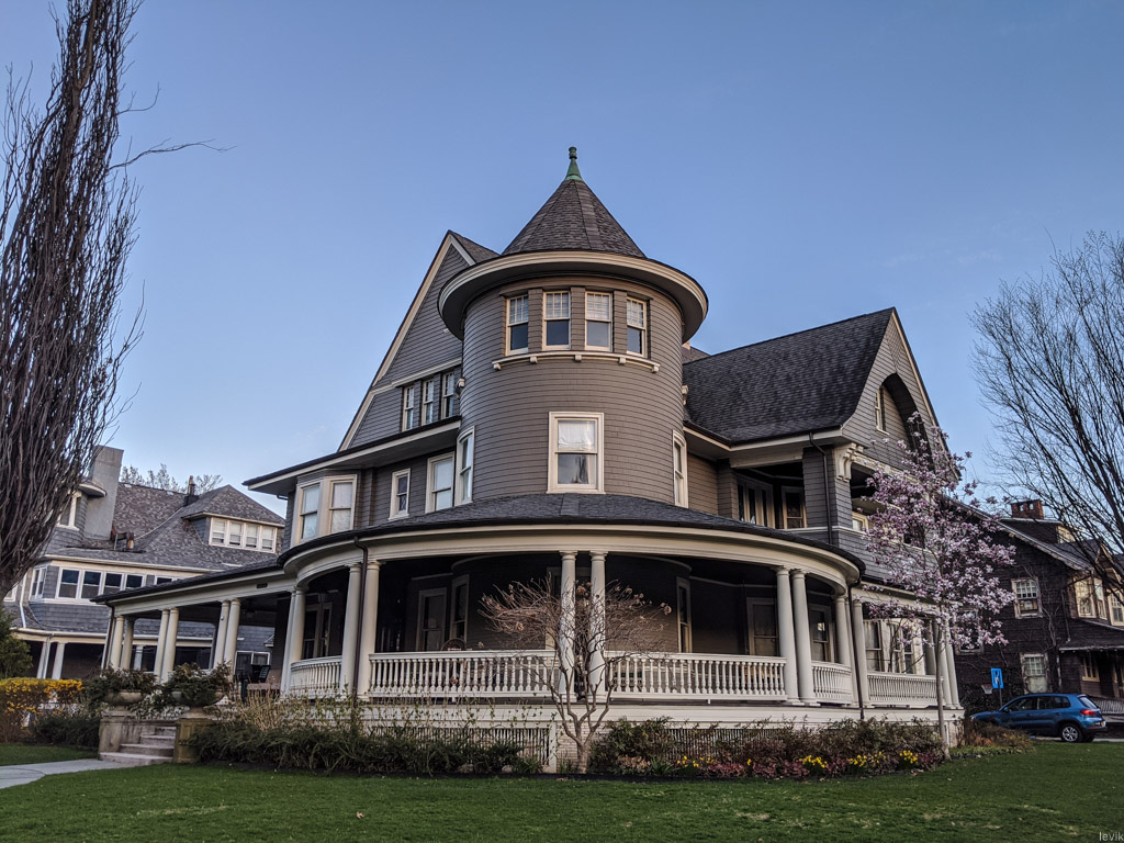 Большинство местных домов было построено с 1902 по 1914, в "викторианском" стиле, то есть, если говорить языком архитектурных чайников - с острыми крышами, колоннами и башенками. Сегодня все эти дома стоят от двух до пяти миллионов долларов. Давайте вместе погуляем по окрестным улочкам, и поглазеем на кукольную роскошь этого района!