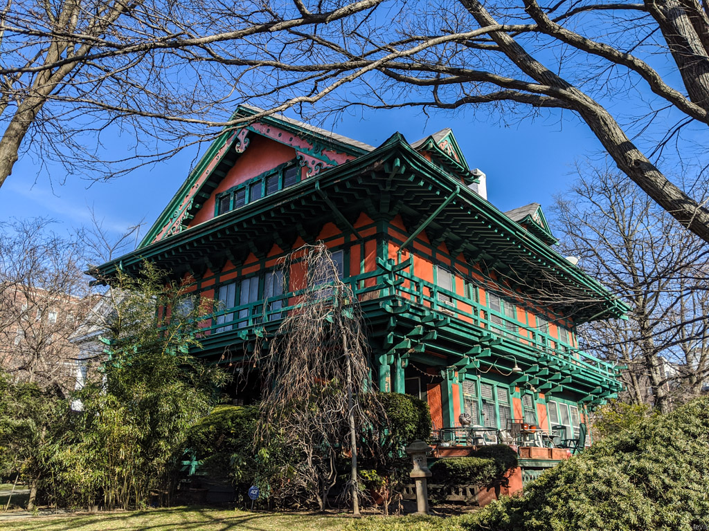 17. А вот это вообще очень странный дом - единственный во всём районе, который построен в азиатском стиле - он напоминает архитектуру японских храмов.