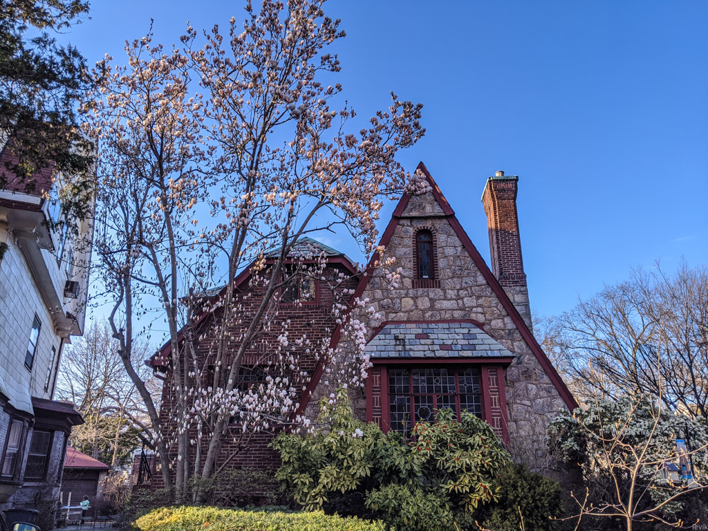 1. По понятным причинам, я в последние пару недель тут часто гуляю. В основном я стараюсь слишком далеко от дома не уходить, других людей живьём не видеть, а на свежий воздух высовываться всё же хочется, чтоб совсем не сойти с ума. К счастью, на этих красивых тихих улицах не так много народу, зато сейчас как раз цветут магнолии, и расцветает вишня!