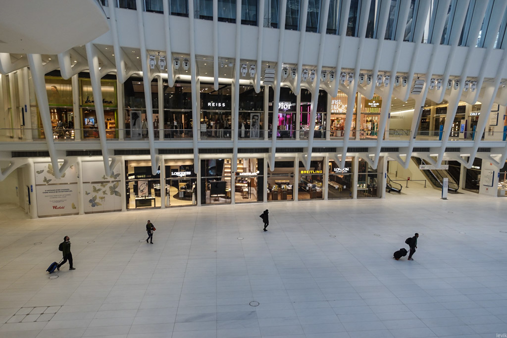 Но сейчас, когда Нью Йорк впереди планеты всей по коронавирусу, Окулус опустел. Более того, именно безлюдные фотографии этого огромного футуристического свода используются в мировой прессе, чтобы проиллюстрировать идею мегаполиса на карантине. Короче, я решил сам посмотреть на это зрелище.