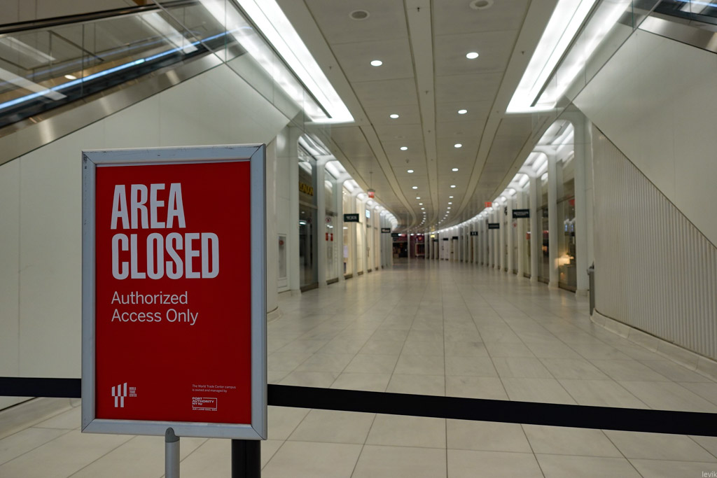20. Некоторые боковые проходы, остаются открытыми, возможно там продолжают работать какие-то жизненно-важные магазины, вроде аптек.