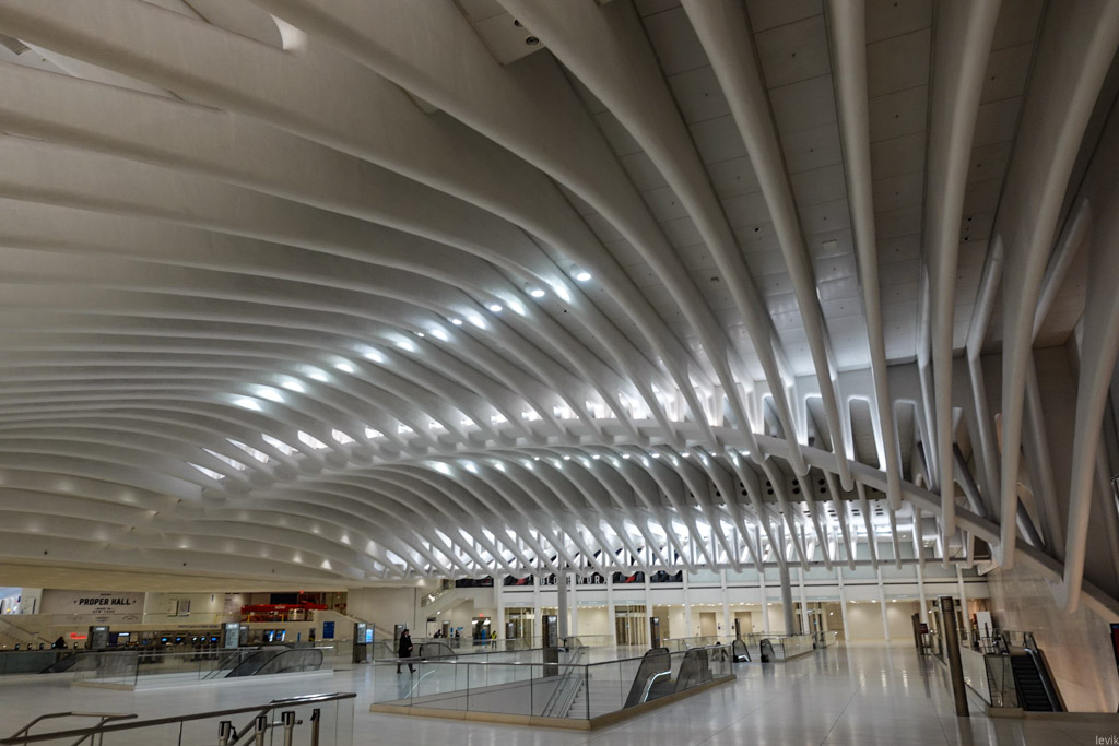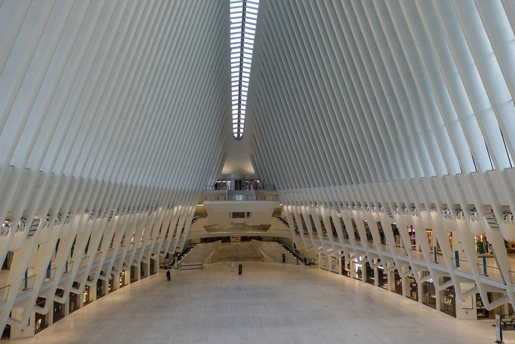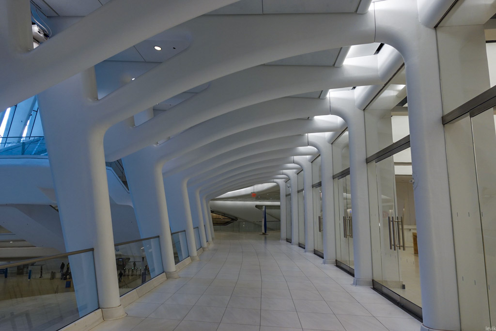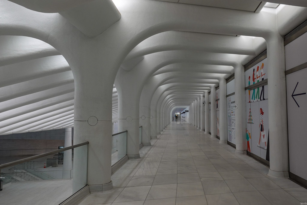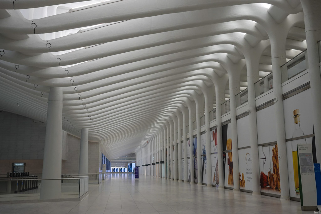 13. Особо интересен эффект пустоты в длинном подземном переходе, который соединяет Окулус с торговым центром на берегу Гудзона. Этот вычурный коридор был первым пространством, куда пустили народ - его открыли ещё в 2015.