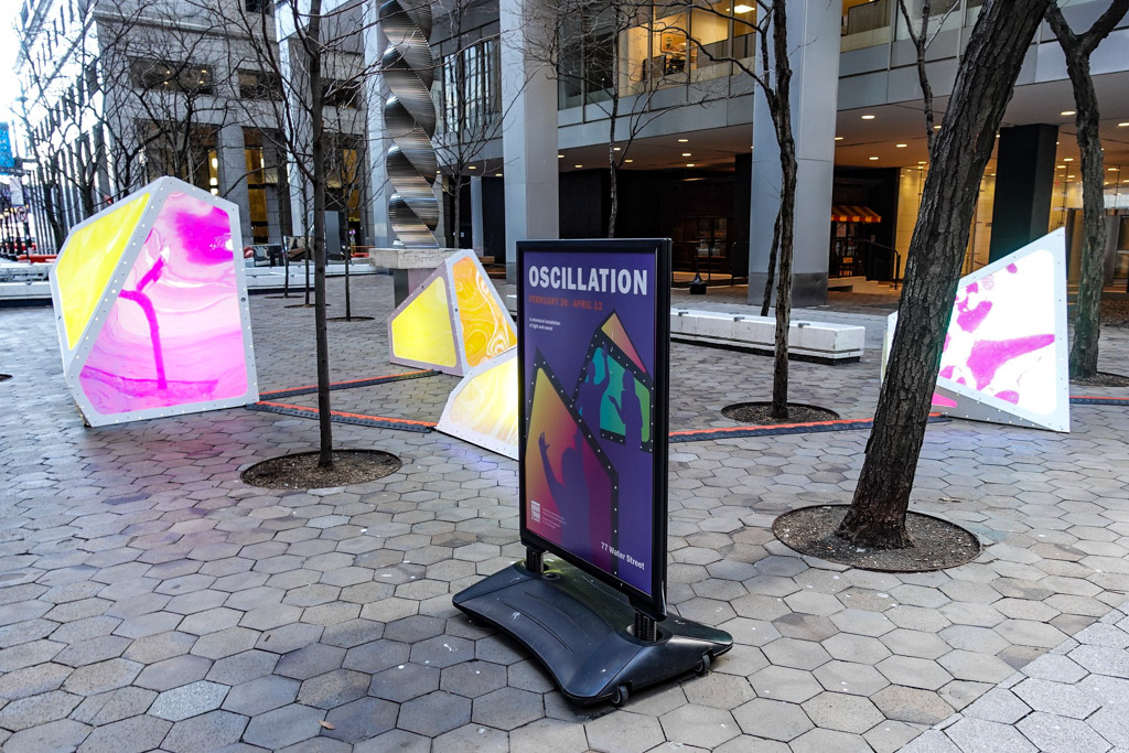 20. Арт-инсталляция "Oscilation", установлена с конца февраля до начала апреля. В нашем городе любят такие временные штуки ставить. Когда её установили, Нью Йорк вообще и не подозревал, что скоро его накроет волна коронавируса.