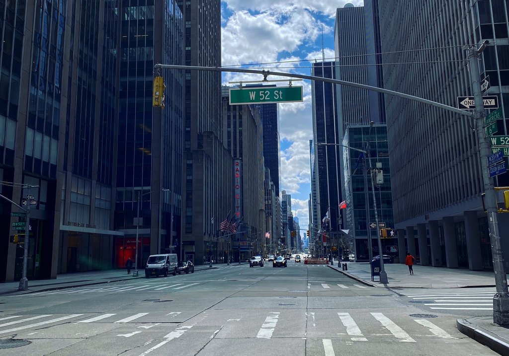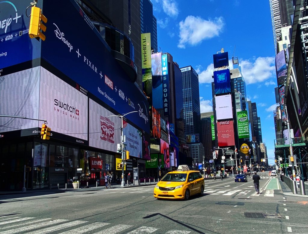 Сейчас в сети выкладывают много фотографий и видео опустевших улиц Нью Йорка. На самом деле в городе действительно стало сильно меньше людей, но не настолько: во многих спальных районах народ в довольно больших количествах выходит из дома по разным неотложным делам. Но большинство отчётов с абсолютно пустыми улицами делаются из делового центра или с туристических достопримечательностей. Так сложилось, что самые узнаваемые нью-йоркские места действительно пустуют.