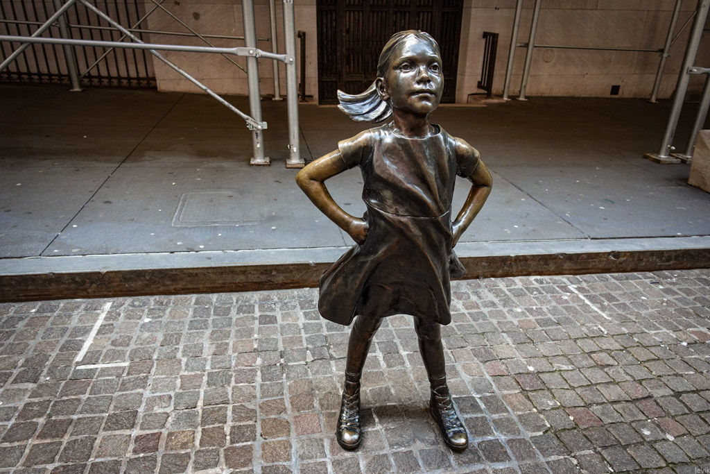 13. Это ещё одна бронзовая статуэтка: Бесстрашная Девочка, которая раньше стояла в паре кварталов отсюда, возле знаменитой скульптуры быка.